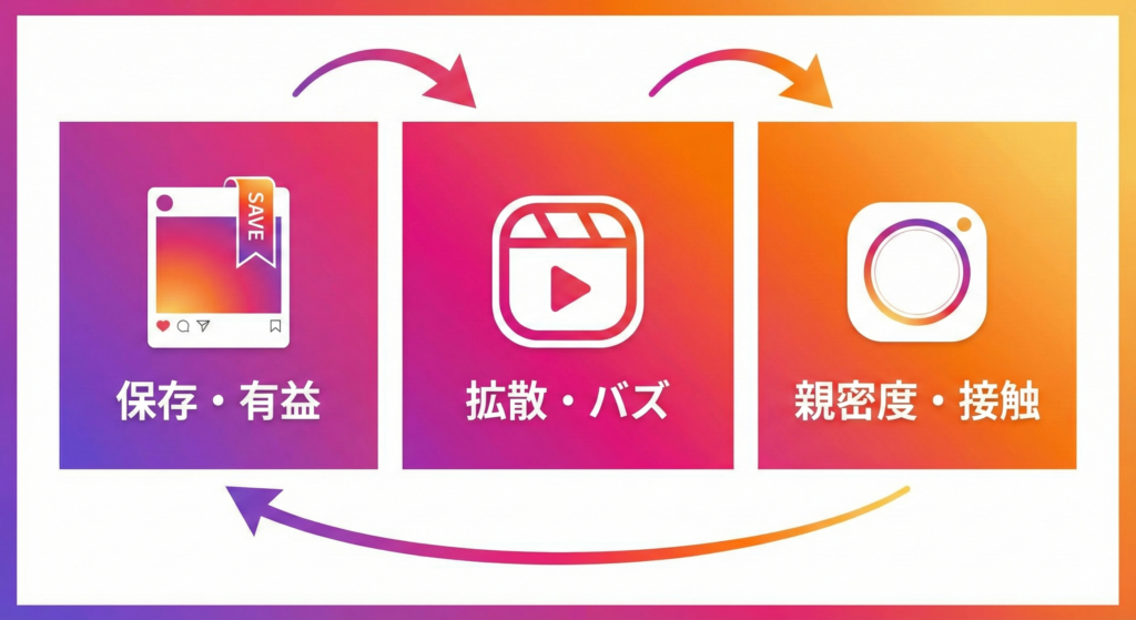 • 初動が良い投稿: 「価値があるコンテンツ」と判断され、発見タブやフォロワーのフィード上位に優先表示される。